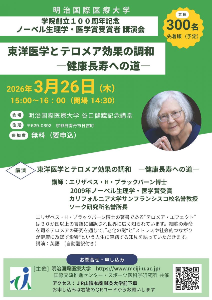 2025年に明治東洋医学院創立100周年を迎えた本学は、その記念講演として、下記のとおり開催いたします。