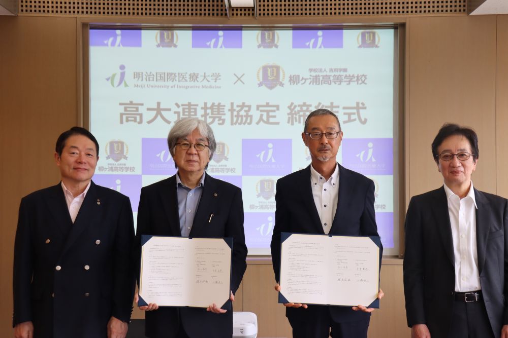 令和7年10月14日(火)明治国際医療大学と柳ヶ浦高等学校(大分県宇佐市)は連携・協力のもと、相互の人的および知的資源の交流・活用を通じて教育活動の活性化を図ることを目的に「高大連携に関する協定」を締結しました。