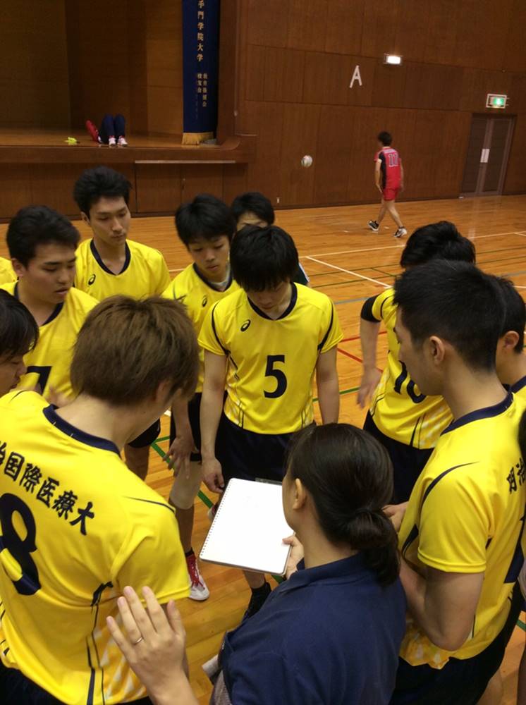6勝1敗、4部2位で迎えた入れ替え戦。前リーグでは煮え湯を飲まされた和歌山大学との戦いに、選手・スタッフの合言葉は「何が何でも勝つ」どんな勝ち方でもいいから勝とう!と気合いが入り迎えた当日。1セット目はセッター川口(鍼灸1年)の采配ひかり、相手を翻弄するバレーができていたのですが2セット目よりペースダウン、しかしキャプテン川辺(保健3年)の意地のスパイクにて終わってみれば25-15。3セット目はミスが続いて案の定取られ、4セット目のシーソーゲームもやはり川辺の頑張りで抜け出ました。良いところも悪いところも出た試合ですが、要所にセンター浅草(看護4年)のブロック、リベロ小針(保健4年)や前本(鍼灸1年)の好レシーブがあり、チームで勝ち取った結果でした。「特待生を迎えての初めてのリーグ。合流して10日余りで試合を迎える難しいリーグだけに不安要素は多々ありましたが、期待以上の成長・結果に満足しています(監督談)。」来シーズンは3部となり、さらに厳しい戦いが予想されます。応援を宜しくお願いいたします。