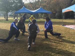 当日は天気にもめぐまれ、約3500人のランナーが冬の亀岡を走りました。本学ではレース前にはダイナミックストレッチ指導、ウォーミングアップジェルの塗布、レース後はアイシングを中心にケア活動を行いました。亀岡マラソンとしては初めてケアブースを出させていただいたにもかかわらず、延べ数でダイナミックストレッチの指導に67名、ウォーミングアップジェルに57名、アイシングに139名の選手が来場くださいました。