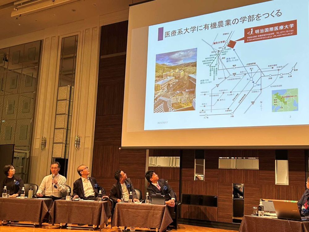 今回のトークセッションでは、行政として本学の地元南丹市長 西村良平様をはじめ、農業・酒造会社などの代表者とともに、「教育と土 ~次世代の人材育成~」をテーマに多様な立場から土を通じた教育のあり方を議論しました。