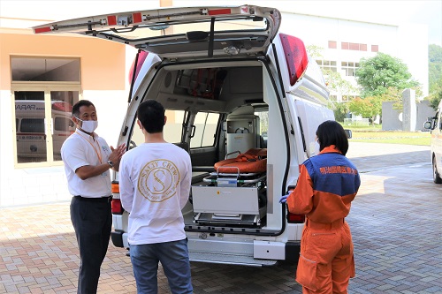 また、3密を避けるため、オリエンテーション・大学紹介・入試ガイダンスもソーシャルディスタンスを確保し学科ごとに行い、学科ガイダンスやミニ講義、キャンパスツアー、クラブ見学なども時間を短縮。時折小雨の降るあいにくの天候となりましたが人数を絞ったきめ細かな対応により、本学の特徴に触れつつ医療系大学ならではの学びを体験いただきました。