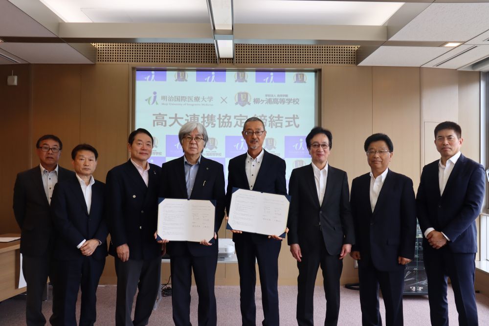 令和7年10月14日(火)明治国際医療大学と柳ヶ浦高等学校(大分県宇佐市)は連携・協力のもと、相互の人的および知的資源の交流・活用を通じて教育活動の活性化を図ることを目的に「高大連携に関する協定」を締結しました。